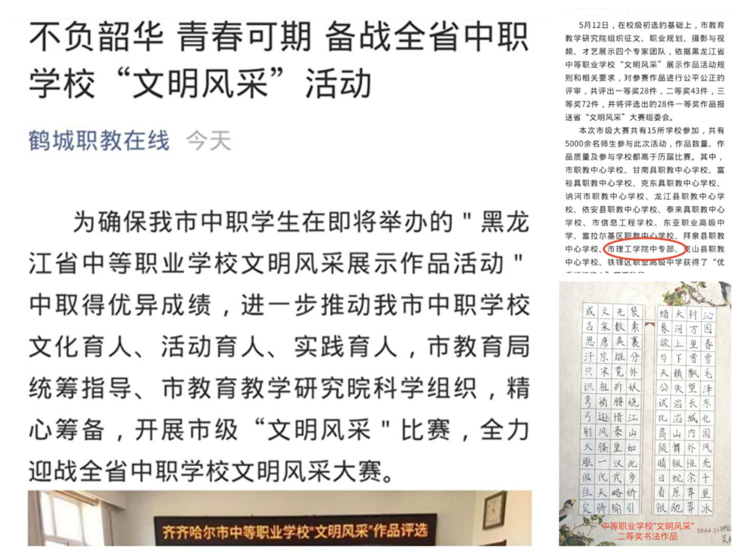 我校在“黑龙江省中等职业学校文明风采展示作品活动”中获得“优秀组织奖"荣詟称号。
